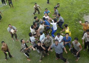 ![]() Indonesian refugees gather under an approaching helicopter to receive food and supplies. |